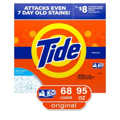 Tide Original Powder He - Товар 1 gain he powder laundry detergent, original, 180 loads, 206 oz fresh scent new!!. Tide original liquid laundry detergent provides the tide clean you love, now more concentrated for more stain removal and freshness and less water vs previous formula. For great stain removal in any temperature. One scoop of tide powder detergent. That's why it's the #1 recommended detergent. One scoop of tide powder detergent equals six scoops of detergent with oxi.